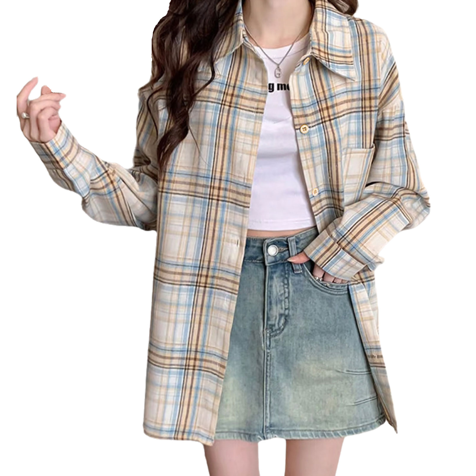 シャツ レディース ブラウス 長袖 チェック柄 ゆったり 前開き 高通気性 トップス ファッション 体型カバー 通勤