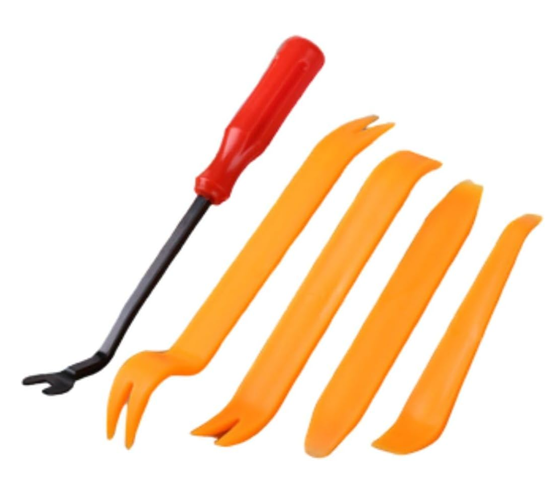 内張り剥がし 自動車内張り外し 5点セット 自動車用リベット パネル剥がし クリップ クランプツール 脱着工具 パーツ オリジナル ツール(すべて パネル剥がし4点+ クリップクランプツール1点含む)
