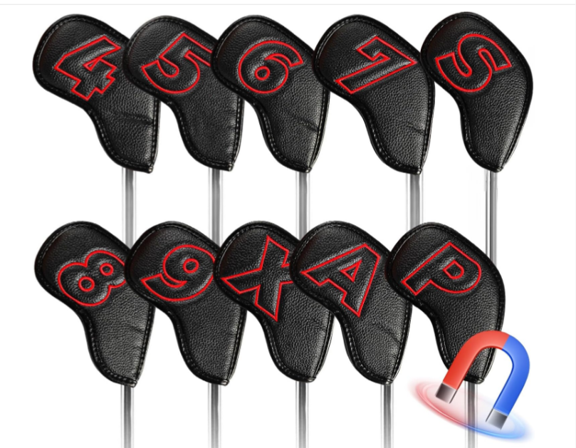 ゴルフアイアンカバー 10枚セット マグネット式開閉 ゴルフヘッドカバー ウェッジカバー 高級PUレザー 軽量 耐久性・撥水性・防塵性・耐摩耗 両面番号刺繍 究極のヘッド保護カバー LT-011