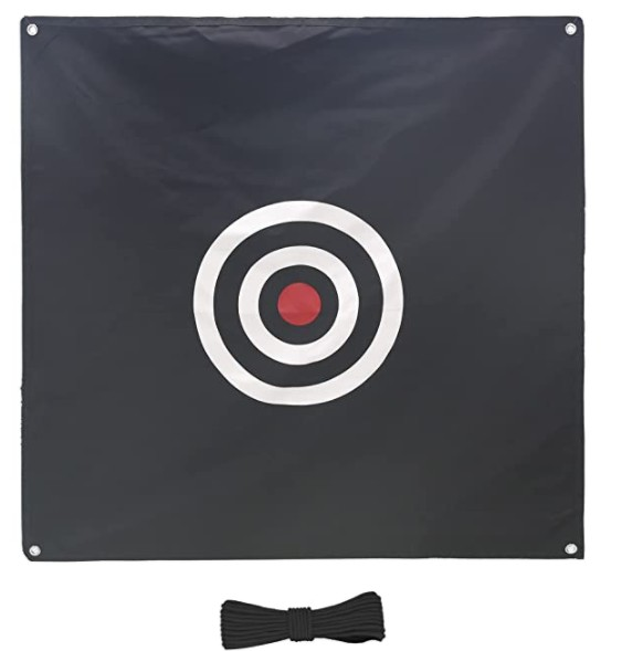ゴルフ練習用ターゲットシート 標的 厚手帆布製 丈夫 ライン付き 屋内/屋外兼用 自宅・庭・ガレージで簡単設置 スイング・ショット練習器具 固定用紐 2 本付き