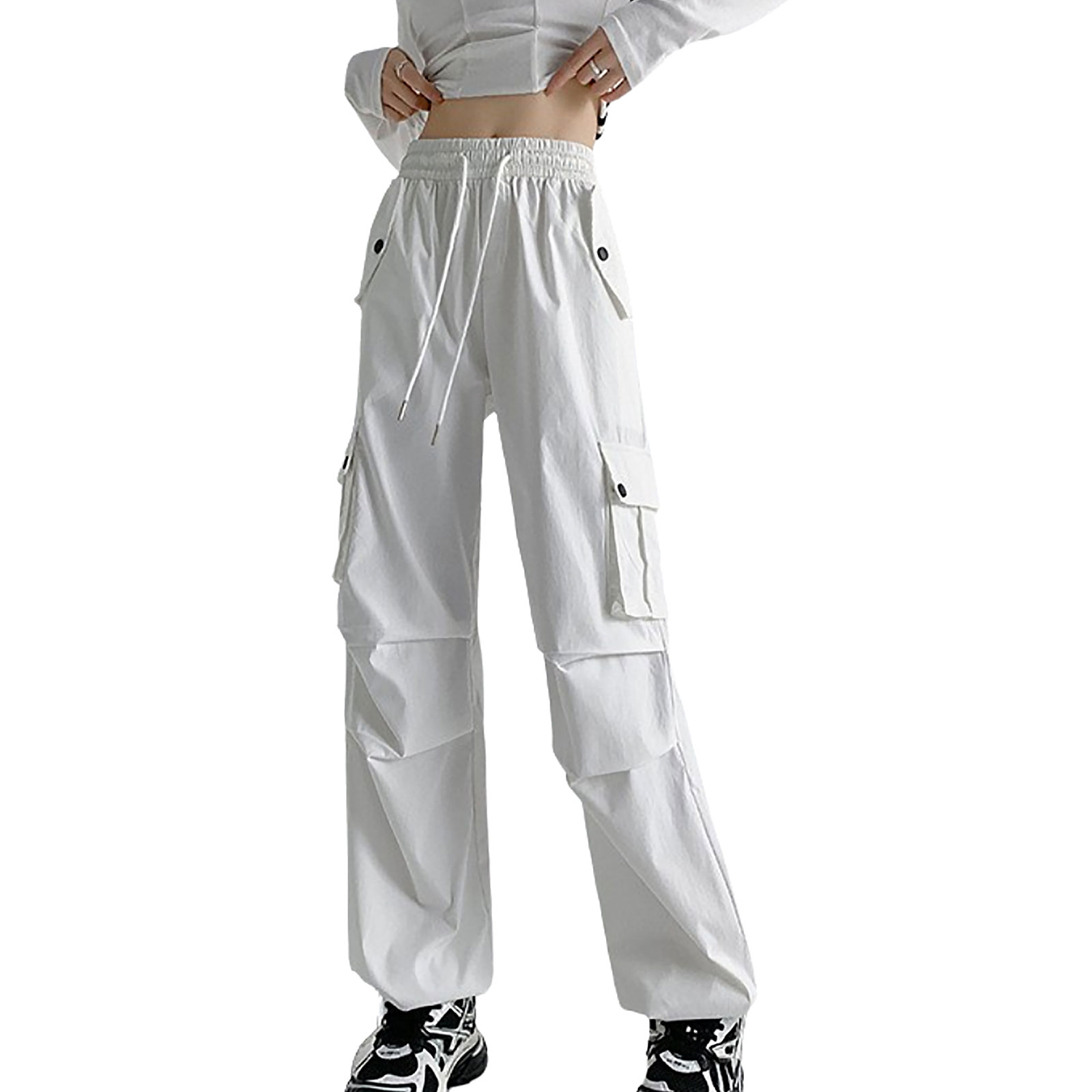 カーゴパンツ レディース ワイドパンツ 無地 ウエストゴム ポケット付き 膝ダーツ 快適 通気性 カジュアル 春秋