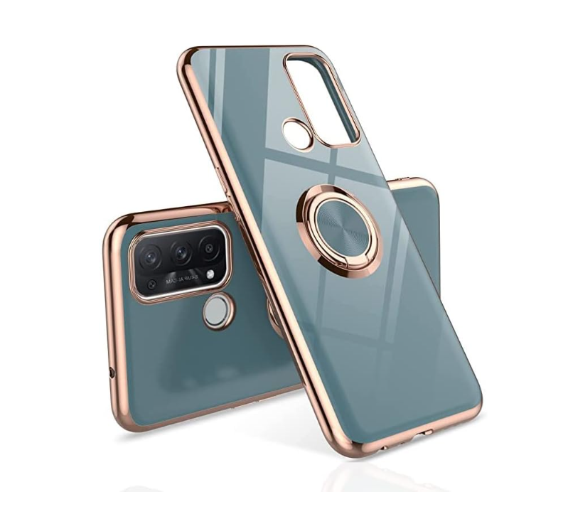 OPPO Reno5 A ケース リング付き ストラップホール付 ソフト [DINGXIN] reno5 aケース 耐衝撃 軽量 薄型 TPU マグネット式 車載ホルダー対応 オッポ リノ5 a ソフトメッキ加工 ケース カバー (OPPO Reno5 A, グレイブルー)