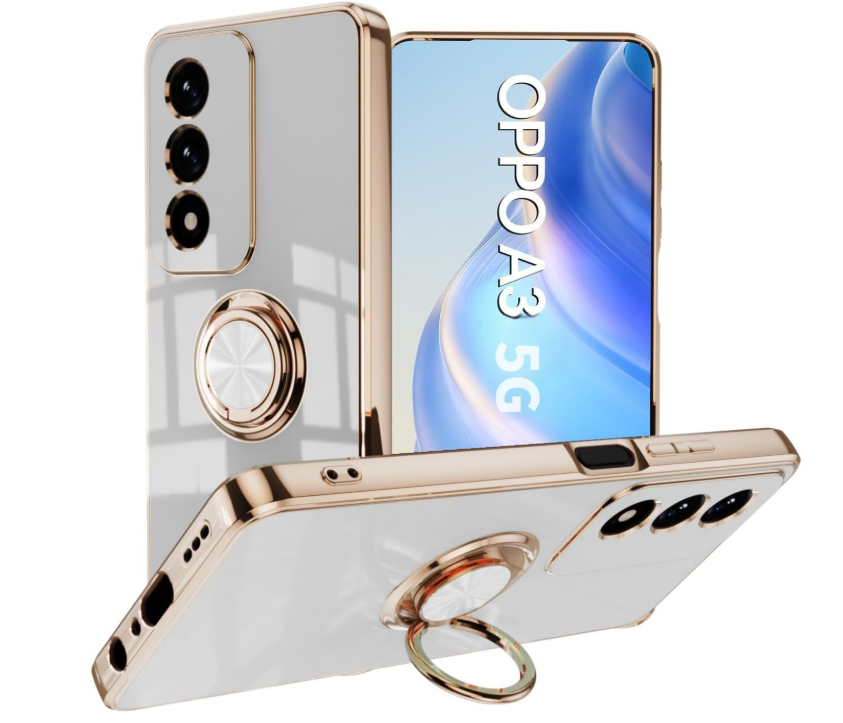 OPPO A3 5G ケース リング オッポa3 5g ケース リング付き スタンド A402OP CPH2639 ソフトメッキ加工 ホワイト